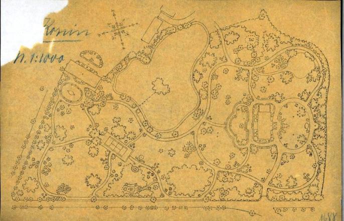 Wpadł nam w ręce pierwotny plan zagospodarowania parku. Zobaczyć można pierwotny układ aleji , staw z wyspą, altanę taneczną, budynki oranżerii. Może kiedyś przywrócimy wygląd zabytkowemu parkowi ?