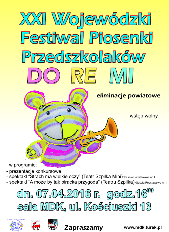 7 kwietnia Miejski Dom Kultury w Kole zaprasza na powiatowe eliminacje Wojewódzkiego Festiwalu Piosenki Przedszkolnej " Do Re Mi.