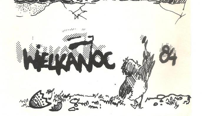 Dziś, w związku z zbliżajacymi się Świętami Wielkanocnymi przypominamy naszym Czytelnikom świateczne kartki pocztowe produkowane i kolportowane w Koninie w 1984 roku przez podziemną Solidarność.