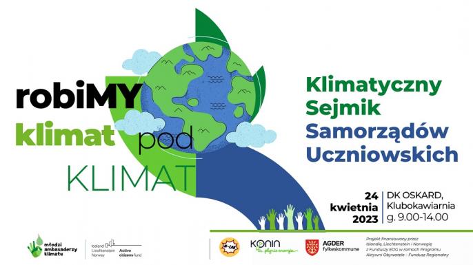 Już w poniedziałek, 24 kwietnia 2023 roku Młodzi Ambasadorzy Klimatu ze Stowarzyszenia M-LAB oraz samorząd Miasta Konina zorganizują Klimatyczny Sejmik Samorządów Uczniowskich szkół podstawowych i ponadpodstawowych, pod nazwą „ROBIMY KLIMAT POD KLIMAT”.