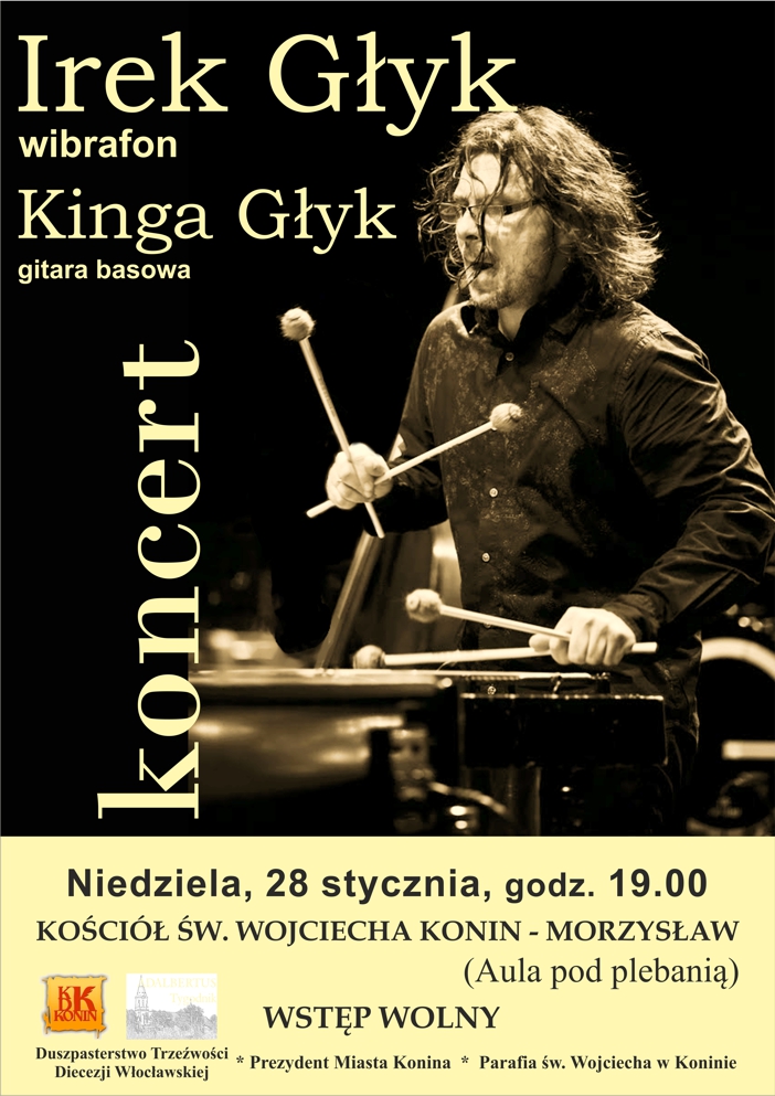 Rok 2018 organizatorzy projektu „Trzeźwienie przez kulturę” rozpoczynają koncertem, który ma szansę stać się prawdziwym wydarzeniem muzycznym! W niedzielę, 28 stycznia o godz. 19.00 w Auli pod plebanią parafii św. Wojciecha w Koninie Morzysławiu wystąpi niezwykły duet instrumentalny – wibrafonista Irek Głyk i jego córka, gitarzystka basowa, Kinga Głyk.