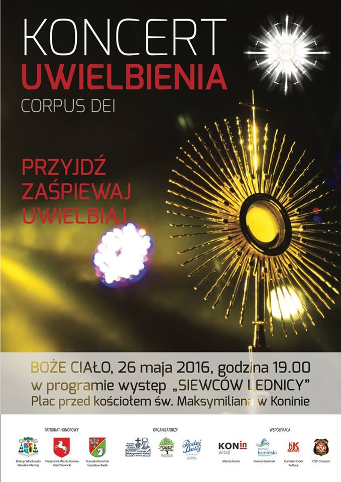 Corpus Dei to koncert muzyki chrześcijańskiej organizowany w Koninie już po raz siódmy. Co roku mieszkańcy spotykają się, by w ten sposób uczcić święto Bożego Ciała. Odbędzie się 26 maja o godz. 19.00 na placu przed kościołem św. Maksymiliana Kolbego w Koninie. Gościem specjalnym wieczoru będzie zespół Siewcy Lednicy.