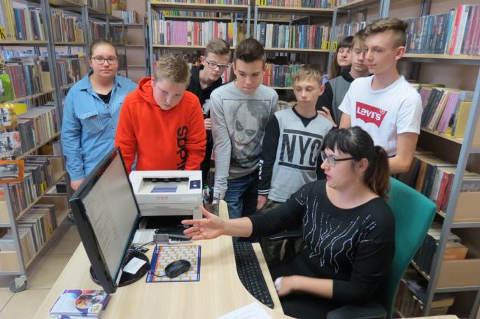 Tam z tajnikami jej funkcjonowania i zarazem swojej codziennej pracy zapoznała ich Karolina Kasprzak. Podczas roboczego spotkania, ósmoklasiści zaznajomieni zostali także ze sposobami poszukiwania informacji w słownikach oraz tradycyjnym i elektronicznym katalogowaniem wszelkich publikacji w oparciu o programinteraktywny „Sowa”. Dowiedzieli się też wielu ciekawostek o gromadzeniu, przechowywaniu i udostępnianiu tematycznych materiałów.
