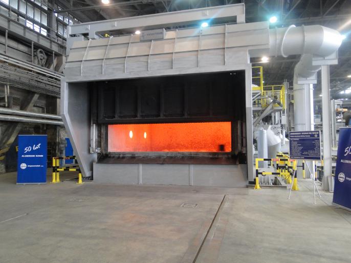 Uruchomiony piec ma pojemność 30 ton, szybkość topienia złomu aluminiowego 6 ton na godzinę. Sam piec waży około 40 ton.