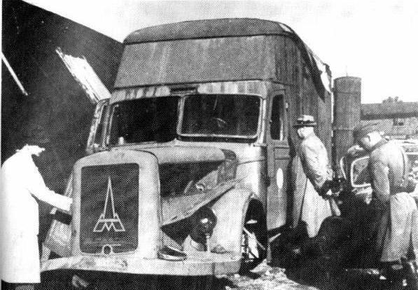 Na zdjęciu komisja bada porzucony przez Niemców „Specialwagen”.