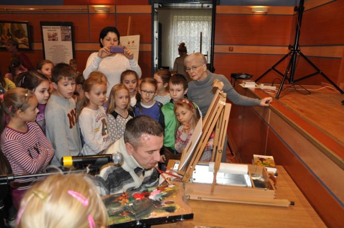 Pan Mariusz udowodnił przybyłym gościom, że nie ma rzeczy niemożliwych. W trakcie imprezy namalował dwa obrazy przy pomocy ust. Dzięki tej niezwykłej lekcji tolerancji, uczestnicy spotkania mogli przekonać się, że bycie niepełnosprawnym nie oznacza zamknięcia w domu i izolacji od otoczenia. Na zakończenie dzieci wręczyły twórcy własnoręcznie wykonane laurki, a Katarzyna Cieślak w imieniu wszystkich złożyła najserdeczniejsze życzenia.