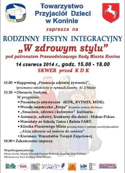 „W zdrowym stylu” – takie hasło towarzyszyć będzie zaplanowanemu na przyszłą sobotę (14 czerwca) tradycyjnemu Rodzinnemu Festynowi Integracyjnemu Towarzystwa Przyjaciół Dzieci.