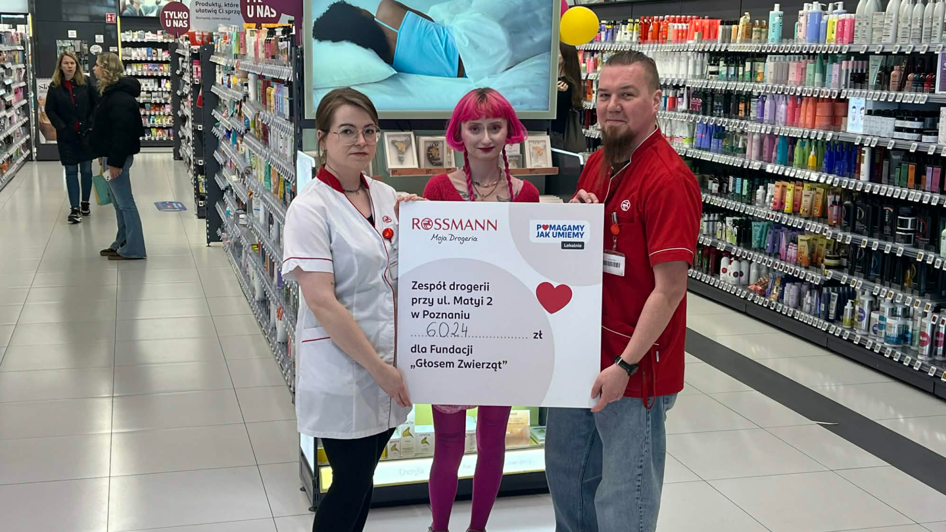 Pomagamy jak umiemy to inicjatywa firmy Rossmann, która od lat łączy klientów i pracowników drogerii we wspieraniu organizacji charytatywnych. Jedna z takich akcji odbyła się 21 lutego w drogerii Rossmann w centrum handlowym Avenida w Poznaniu. Tego dnia na godzinę kasy przejęły przedstawicielki Fundacji „Głosem Zwierząt”, a dochód z zakupów wykonanych w tym czasie został przeznaczony na wsparcie działalności organizacji.