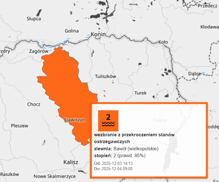 Instytut Meteorologii i Gospodarki Wodnej wydał zaktualizowane ostrzeżenie hydrologiczne drugiego stopnia dla obszaru rzeki Czarna Struga (Bawół) w województwie wielkopolskim. Mieszkańcy regionu powinni zachować szczególną ostrożność, ponieważ prognozowany jest wzrost poziomu wód, który może skutkować przekroczeniem stanów ostrzegawczych.