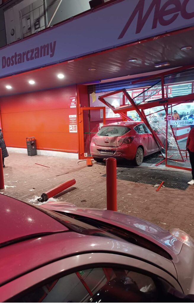 Siła uderzenia była na tyle duża, że zaparkowany pojazd przemieścił się i z impetem uderzył w drzwi wejściowe do sklepu. Świadkowie mówią o dużym huku i sporym zaskoczeniu klientów, którzy w tym czasie robili zakupy.