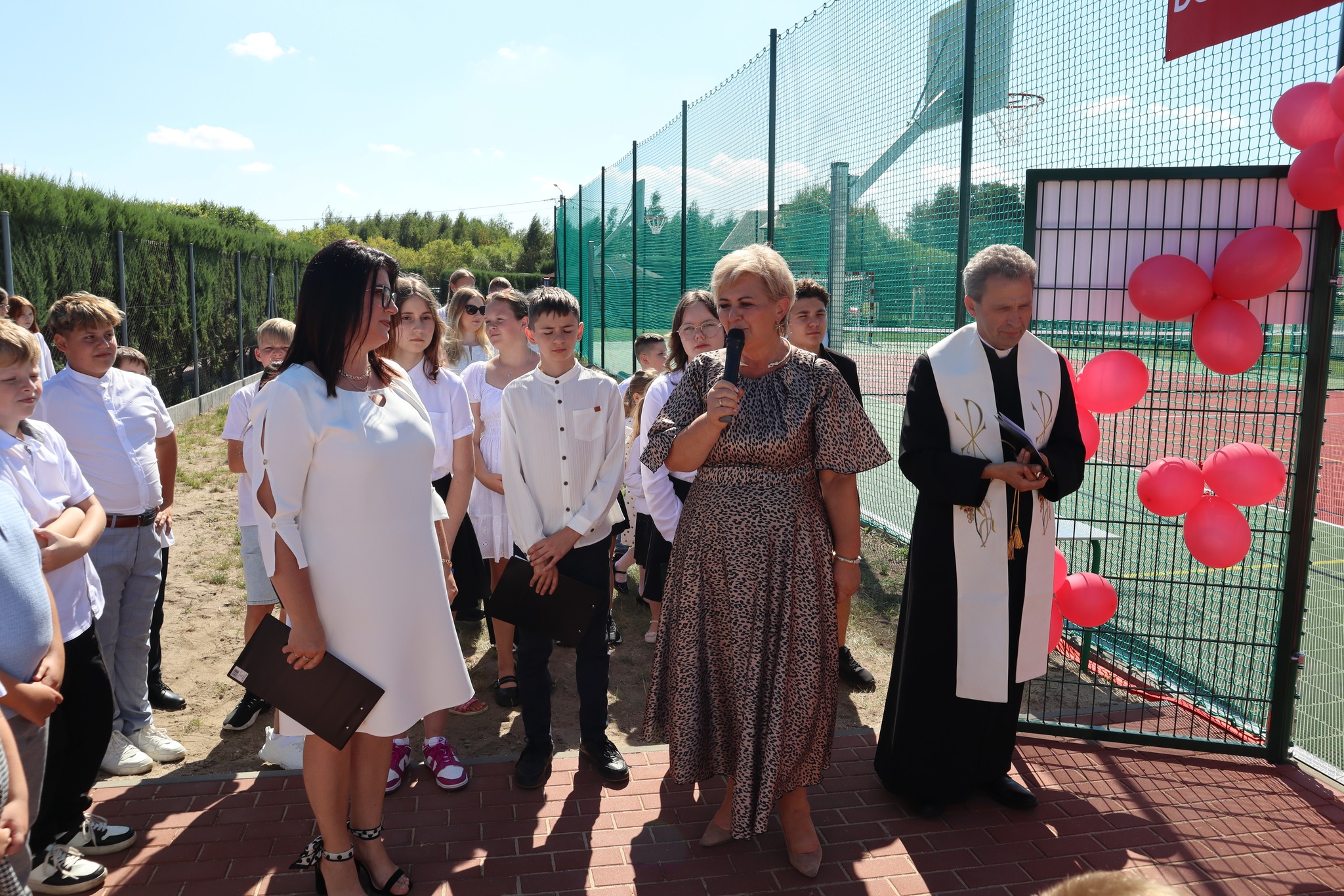 W imieniu społeczności szkolnej wdzięczność wyraziła uczennica Katarzyna Augustyniak. Podkreśliła, że dzieci marzyły o takim miejscu i obiecała, że będą o nie dbać, korzystając zgodnie z zasadami fair play. Uroczyste przecięcie wstęgi należało do Marzeny Pieszak i Zuzanny Wróbel, a obiekt został poświęcony przez księdza Wojciecha Kaźmierczaka.