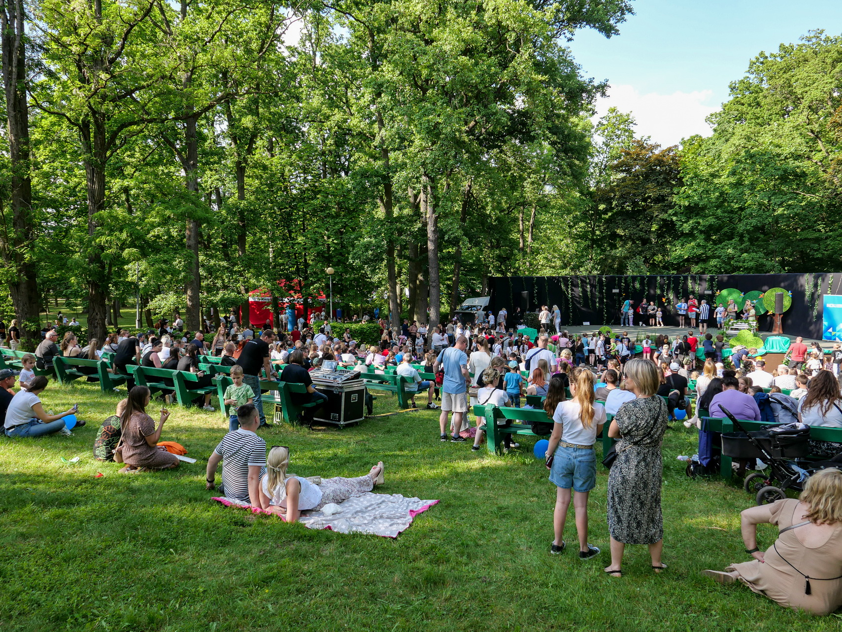 Przestrzeń parku wypełniły liczne stoiska przygotowane z myślą o dzieciach – od sportowych i sprawnościowych, przez taneczne, aż po kulinarne. Każde stanowisko przyciągało nie tylko ofertą aktywności, ale również kolorową oprawą i przyjazną atmosferą. Dzieci mogły spróbować swoich sił w różnych konkurencjach, zatańczyć, posmakować lokalnych przysmaków i zdobyć upominki.