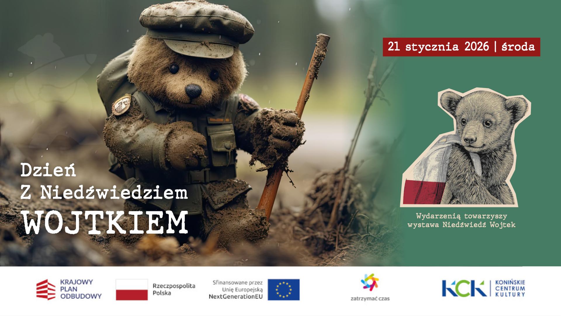 Konińskie Centrum Kultury zaprasza dzieci, młodzież i dorosłych na wyjątkowe wydarzenie poświęcone jednej z najbardziej niezwykłych postaci II wojny światowej. Już 21 stycznia odbędzie się „Dzień z Niedźwiedziem Wojtkiem” — pełen emocji, historii i wzruszeń cykl spotkań, spektakli i wykładów, które opowiedzą losy kaprala Wojtka, niedźwiedzia-żołnierza Armii Andersa.