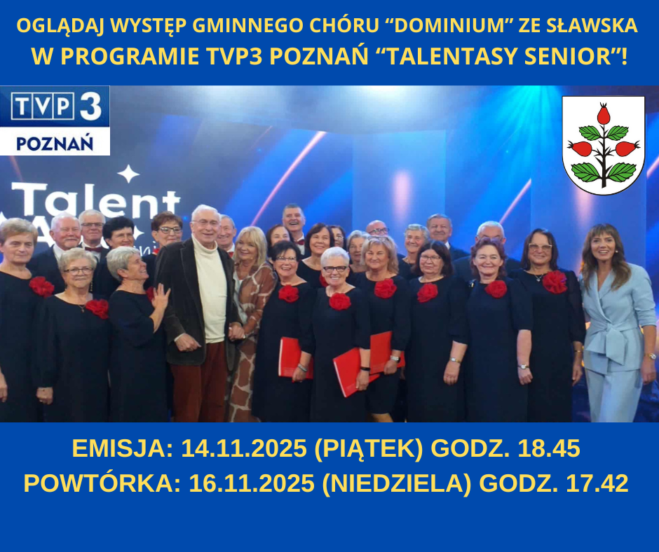 Gminny Chór „Dominium” ze Sławska w gminie Rzgów już wkrótce pojawi się na ekranach telewizorów! Zespół został zaproszony do udziału w programie „TalentAsy Senior”, emitowanym przez TVP3 Poznań. To wyjątkowa okazja, by zaprezentować muzyczny dorobek oraz pasję seniorów z regionu konińskiego szerszej publiczności.