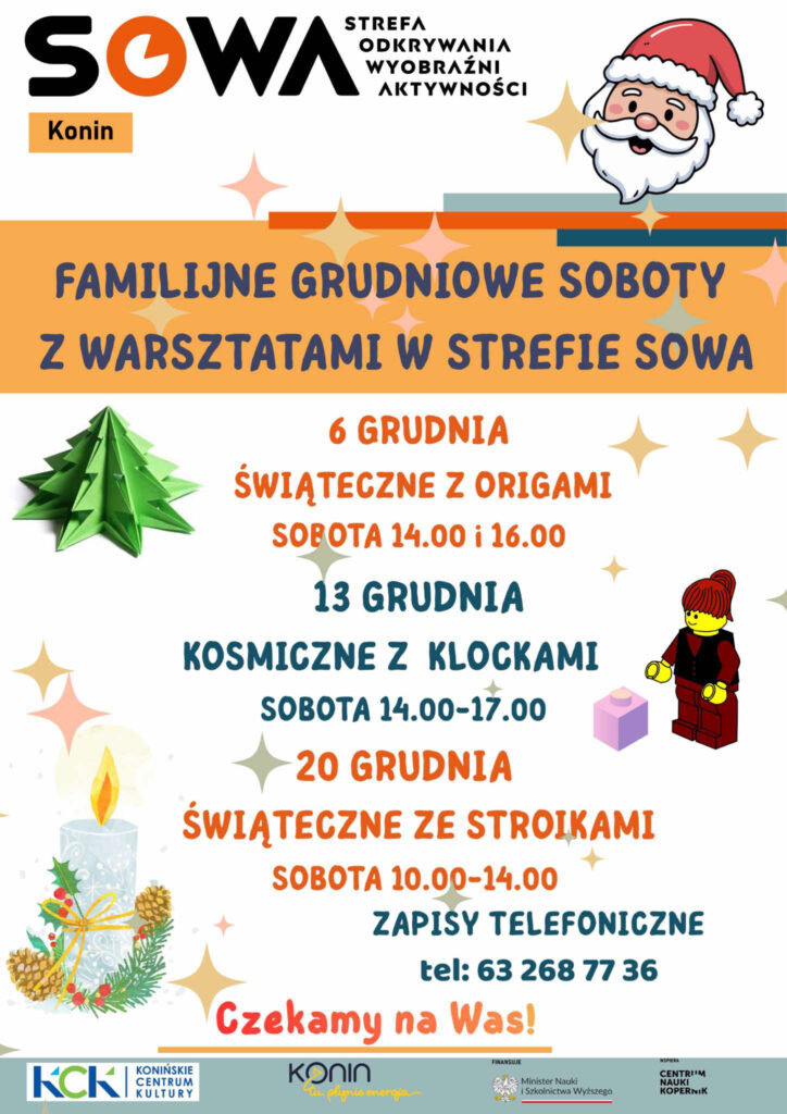 Na wszystkie grudniowe warsztaty w Strefie SOWA obowiązują zapisy telefoniczne pod numerem: