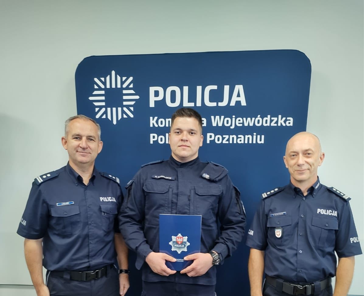 Wśród nagrodzonych znalazł się posterunkowy Kacper Kowalczyk z Komendy Miejskiej Policji w Koninie, który odebrał gratulacje za znakomite rezultaty oraz wzorową postawę służbową.