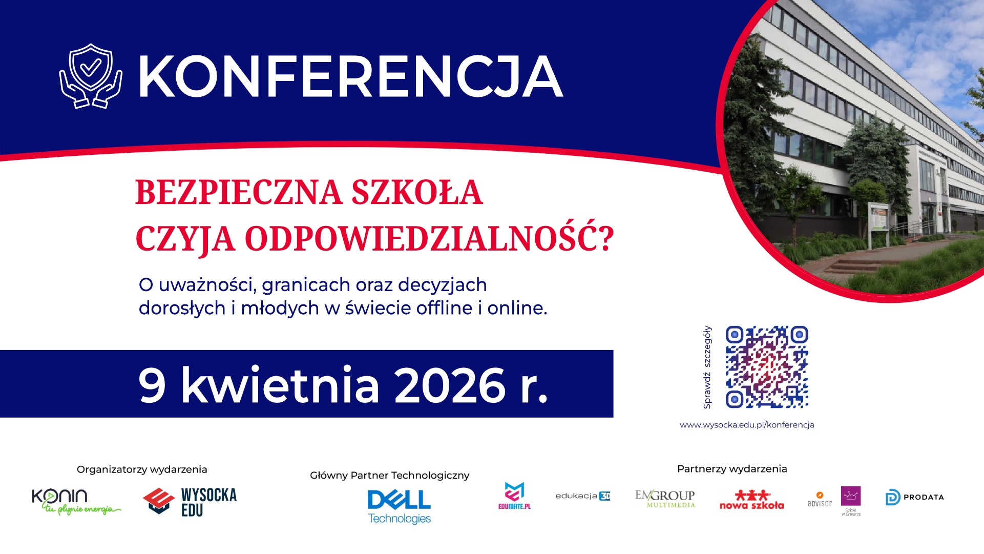 9 kwietnia w Akademii Nauk Stosowanych w Koninie odbędzie się ogólnopolska konferencja pt. „Bezpieczna szkoła – czyja odpowiedzialność?”. Wydarzenie skierowane jest do nauczycieli, dyrektorów szkół, samorządowców oraz rodziców. Dla wszystkich którzy chcą wspólnie zastanowić się nad wyzwaniami związanymi z bezpieczeństwem w edukacji. Organizatorami spotkania są Miasto Konin, Wysocka Edu – Marta Wysocka oraz główny partner technologiczny Dell Technologies.