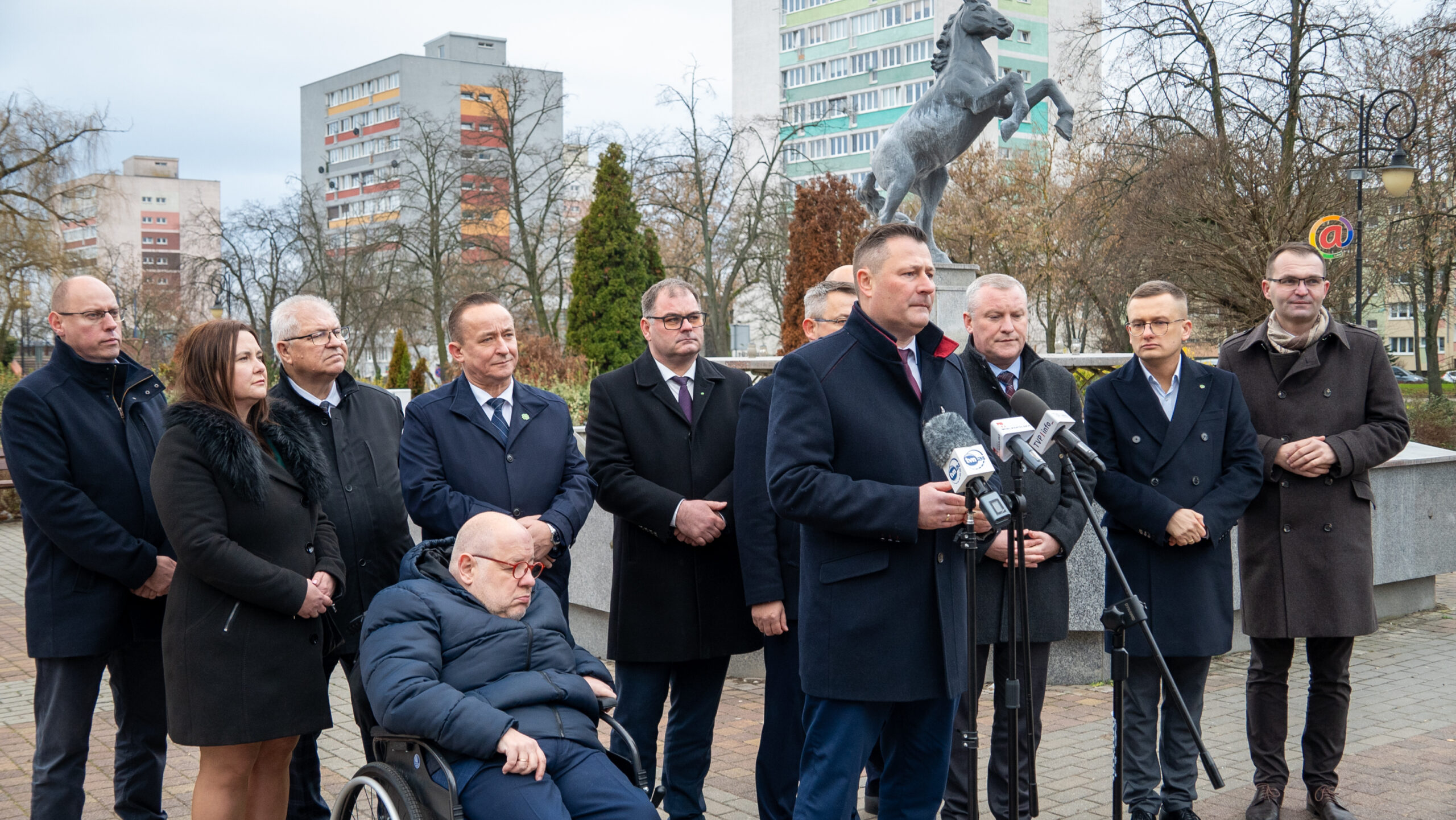 Spotkanie z mediami miało wymiar symboliczny – odbyło się przy Fontannie „Koń” na Placu Niepodległości, w przeddzień drugiej rocznicy zaprzysiężenia rządu Donalda Tuska. W Koninie obecni byli m.in. Jakub Stefaniak, zastępca szefa Kancelarii Prezesa Rady Ministrów, poseł Krzysztof Paszyk – lider wielkopolskich struktur PSL oraz poseł Michał Pyrzyk. Jak podkreślano, wybór lokalizacji nie był przypadkowy, a miasto ma ambicję stać się jednym z kluczowych punktów na mapie strategicznych inwestycji państwa.