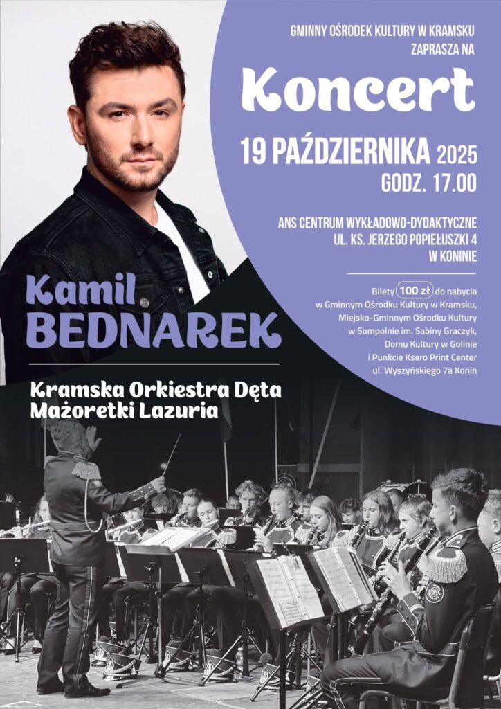 Gminny Ośrodek Kultury w Kramsku zaprasza po bilety na wyjątkowy koncert Kramskiej Orkiestry Dętej, podczas którego wystąpi również Kamil Bednarek. Wejściówki można nabyć nie tylko w Kramsku, ale także w Koninie, Golinie i Sompolnie. Nie przegap tej muzycznej uczty – wydarzenie już wkrótce!