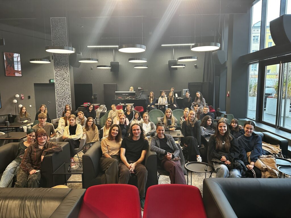 Po spektaklu odbyło się spotkanie z aktorami Ewą Audykowską-Wiśniewską i Mateuszem Czwartoszem oraz inspicjentką Anną Królikowską. Rozmowa z młodzieżą dotyczyła interpretacji scen, emocji bohaterów, a także tematów bliskich młodemu pokoleniu – depresji, samotności i potrzeby prawdziwego kontaktu z drugim człowiekiem. Artyści zdradzili również kulisy pracy w teatrze i podzielili się refleksjami o zawodzie aktora.
