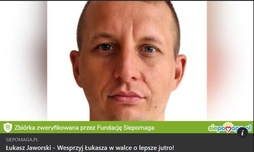 Na stronie Łukasz Jaworski – Wesprzyj Łukasza w walce o lepsze jutro! | Siepomaga.pl prowadzonej za pośrednictwem platformy charytatywnej, można przekazać darowiznę pieniężną. Zostanie ona przeznaczona na rehabilitację, leczenie i niezbędne wsparcie medyczne. Każda wpłata to realna nadzieja na zachowanie choć części niezależności i lepsze jutro.