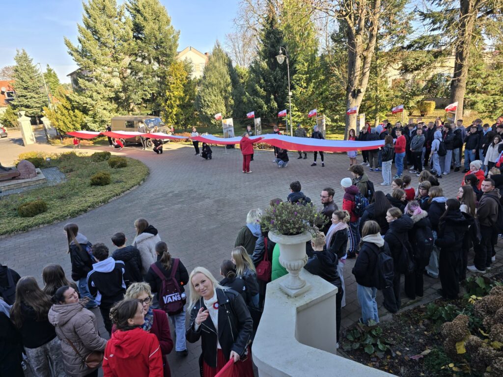 Uroczystość rozpoczęła się przy polskiej fladze, gdzie – po słowach wprowadzenia wygłoszonych przez dyrektor szkoły – uczniowie, nauczyciele i zaproszeni goście wspólnie odśpiewali Mazurka Dąbrowskiego. Następnie uczestnicy wzięli udział w Marszobiegu Niepodległości, który stał się symbolem jedności i pamięci o narodowych wartościach.