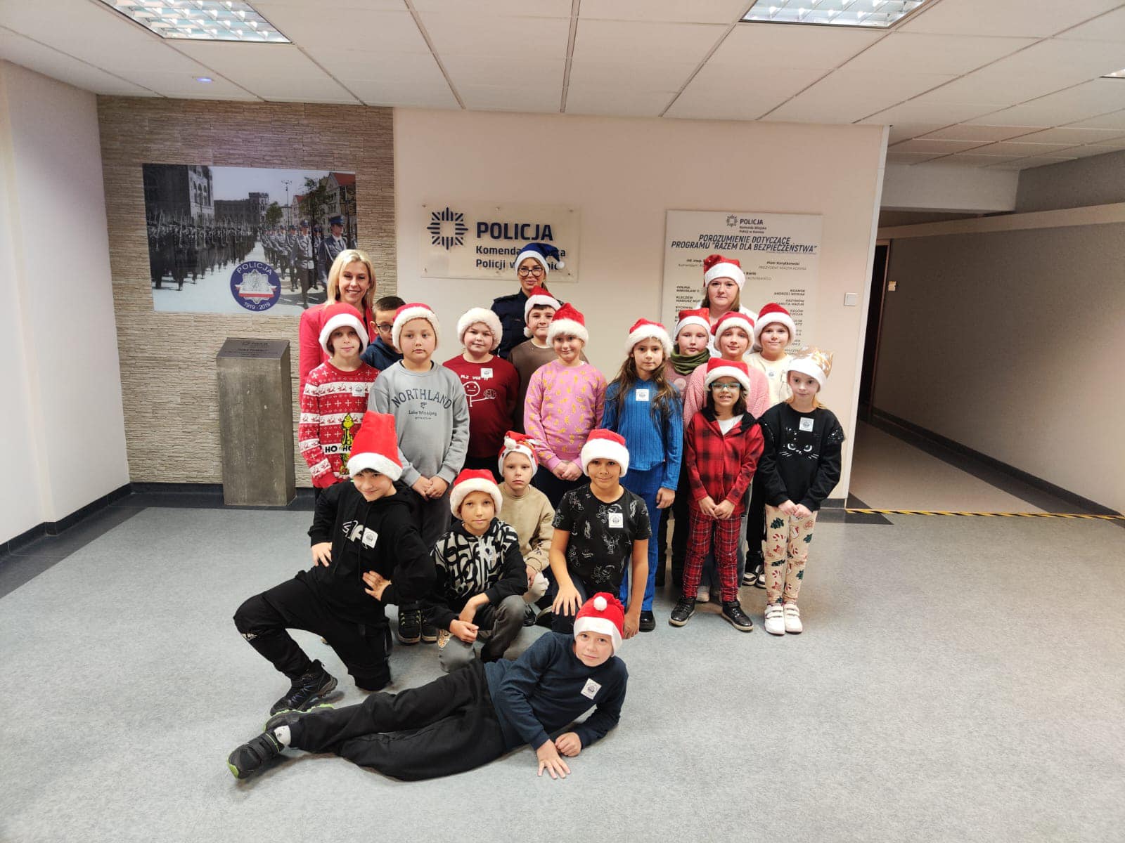 Konińska Komenda na chwilę zamieniła się w Mikołajkową Krainę! Dzieci ze Szkoły Podstawowej w Lubstowie odwiedziły nas, przebrane w czerwone czapki, które sprawiły, że wyglądały jak mali pomocnicy Świętego Mikołaja.