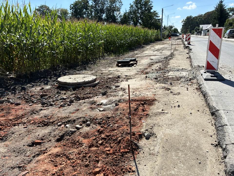 - Wykonanie chodników i zjazdów po obu stronach drogi,