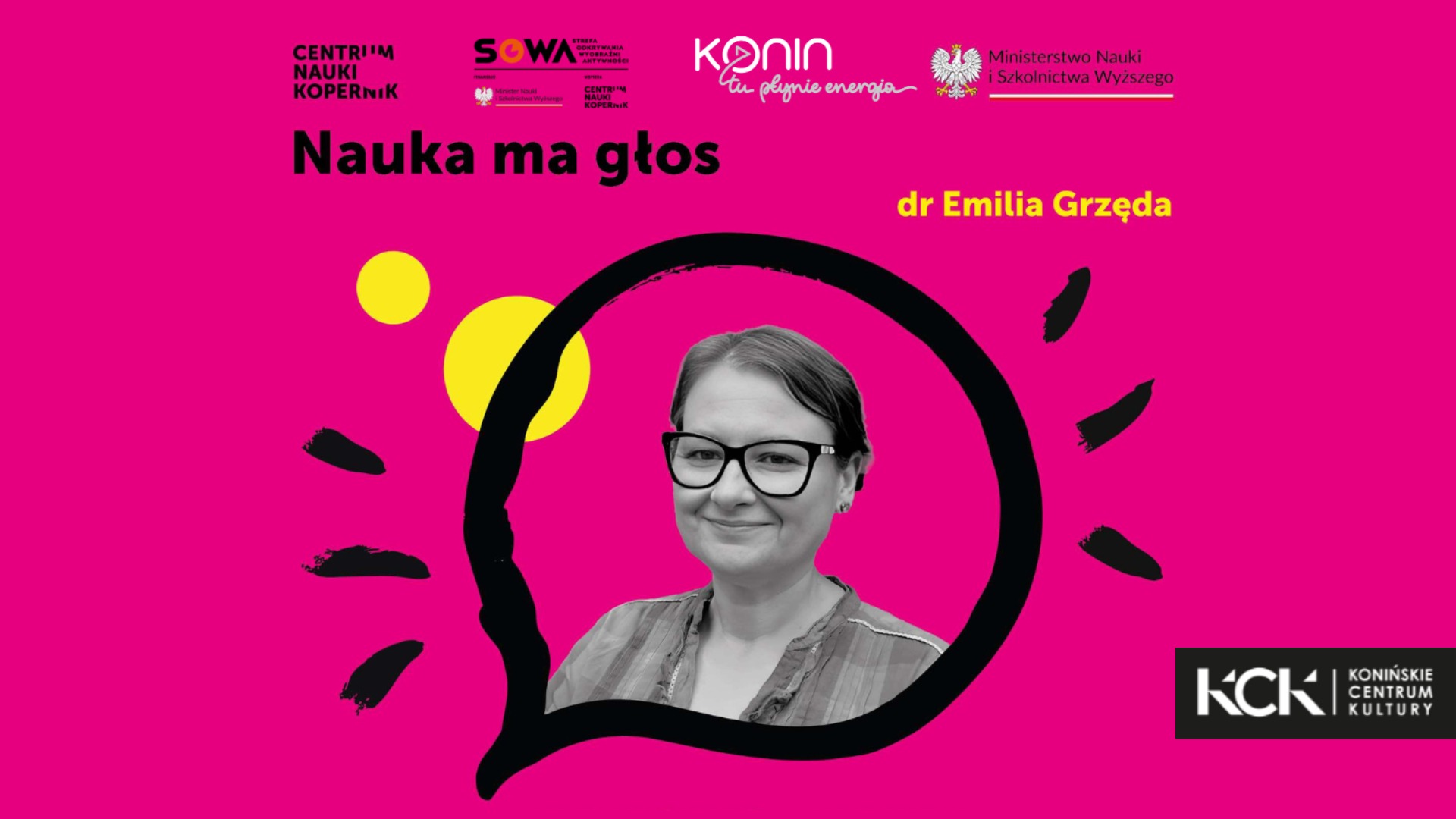 „Nauka ma głos”, realizowanego dzięki dofinansowaniu Centrum Nauki Kopernik oraz Ministerstwa Nauki i Szkolnictwa Wyższego — program „Nauka dla Ciebie”. To pierwsze wydarzenie z tego cyklu organizowane w Strefie SOWA Konin.
