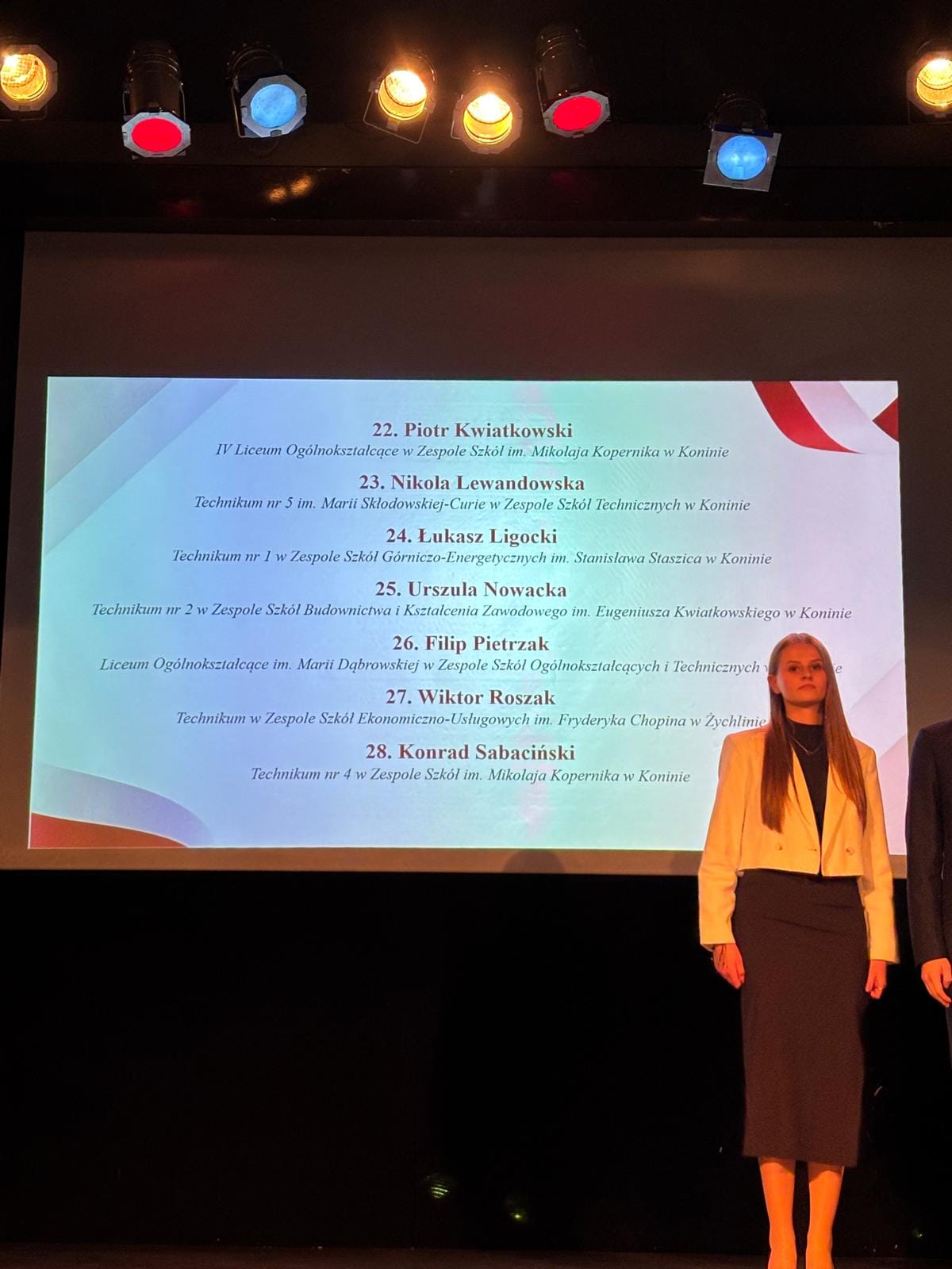Wśród nagrodzonych uczniów za szczególne osiągnięcia w nauce znalazła się Nikola Lewandowska z klasy 3TP Zespołu Szkół Technicznych w Koninie. Miasto Konin reprezentował wiceprezydent Witold Nowak, który wręczał certyfikaty stypendystom. Nikola Lewandowska po raz drugi z rzędu otrzymała stypendium za najwyższą średnią ocen w szkole.