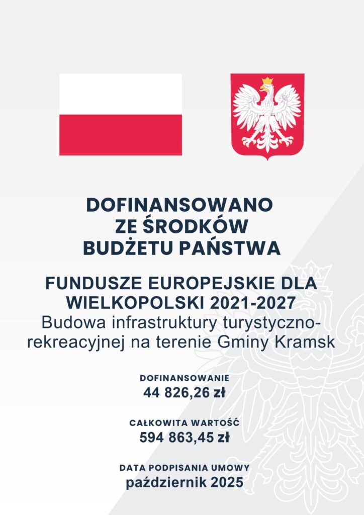 Inwestycja pod nazwą „Budowa infrastruktury turystyczno-rekreacyjnej na terenie Gminy Kramsk” jest możliwa dzięki pozyskaniu środków w ramach Programu Regionalnego Fundusze Europejskie dla Wielkopolski 2021-2027. Całkowita wartość przedsięwzięcia opiewa na kwotę blisko 595 tysięcy złotych, z czego dofinansowanie wynosi ponad 403 tysiące złotych. Co istotne, projekt obejmuje stworzenie trzech odrębnych punktów rekreacyjnych, co pozwoli na równomierny rozwój infrastruktury w różnych częściach gminy.