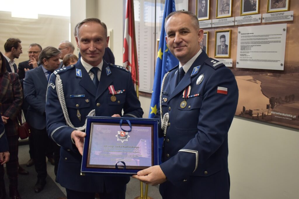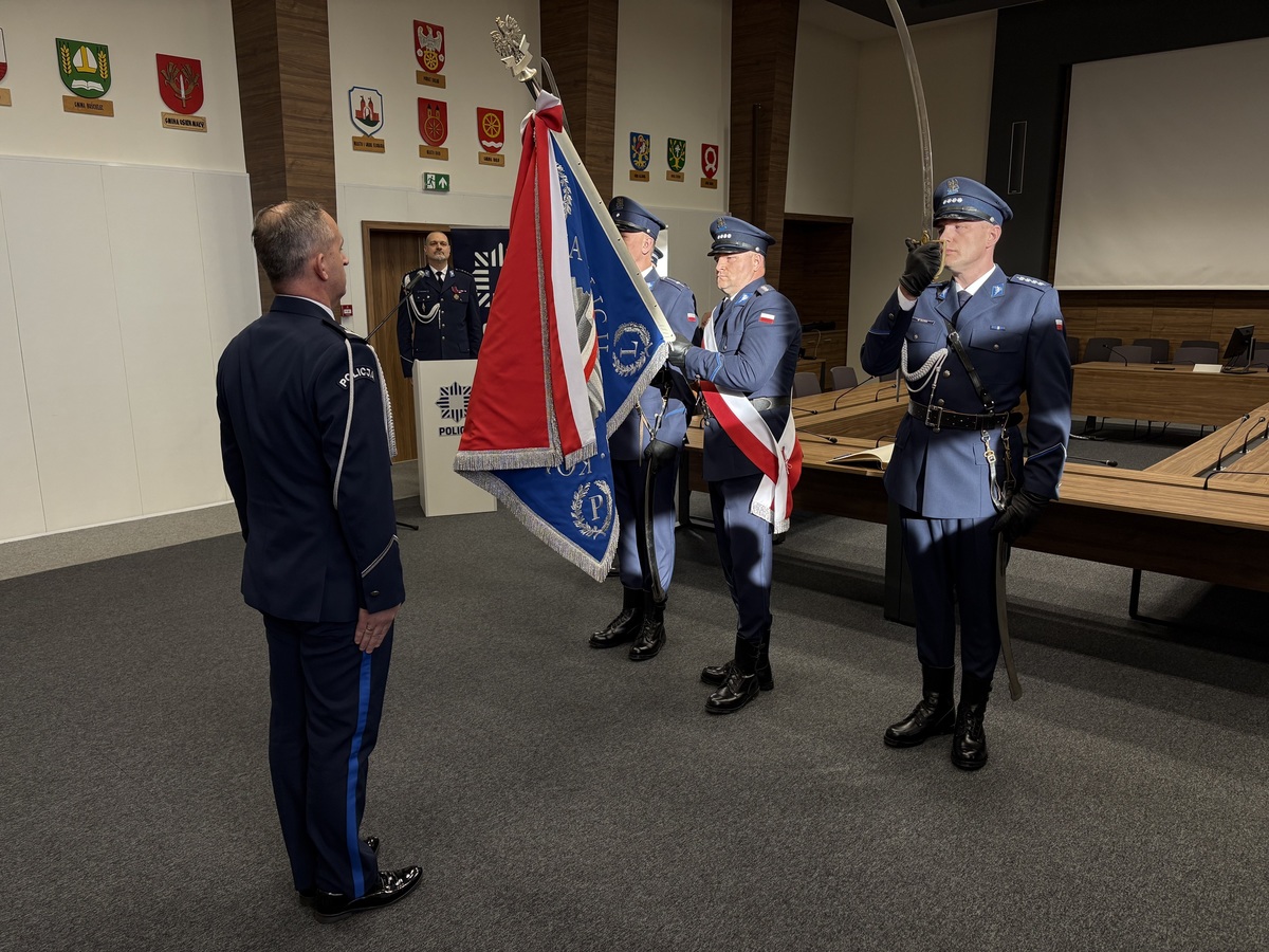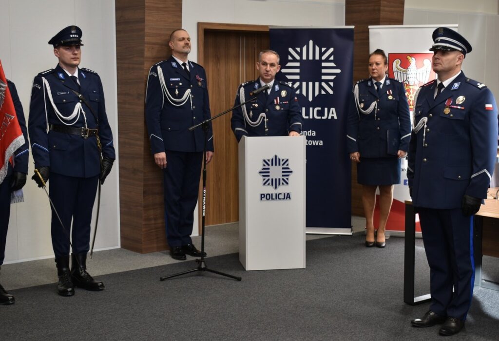 Komendant Wojewódzki Policji w Poznaniu podkreślił podczas przemówienia nie tylko doświadczenie mł. insp. Kudlińskiego, ale także znaczenie współpracy policji z samorządem i lokalną społecznością w zapewnianiu bezpieczeństwa mieszkańców powiatu kolskiego.