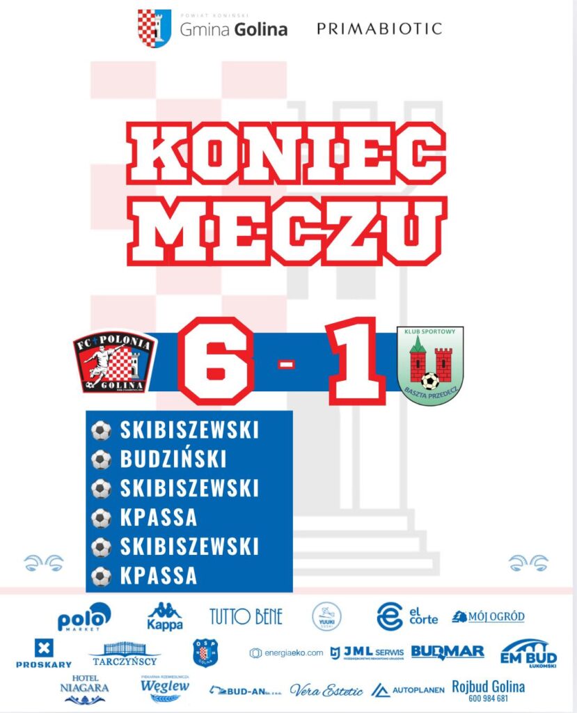 Polonia Golina odniosła kolejne ligowe zwycięstwo. Rezerwy klubu w meczu 5. kolejki „Proton” Klasy A pokonały drużynę Baszty Przedecz aż 6:1. Spotkanie rozegrane zostało pod pełną kontrolą gospodarzy, którzy od pierwszych minut narzucili własny styl gry.