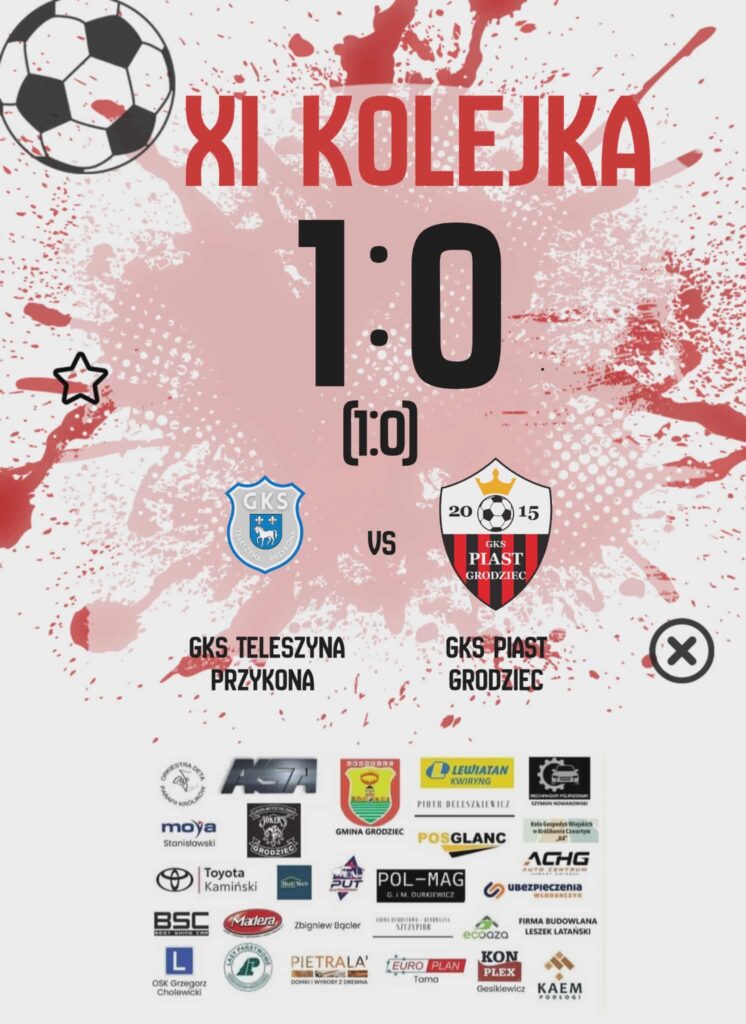 GKS Piast Grodziec rozegrał wyjazdowy mecz z liderem rozgrywek, zespołem GKS Teleszyna Przykona. Choć gospodarze byli faworytem, drużyna z Grodźca podjęła ambitną walkę o punkty i do końca nie zamierzała składać broni.