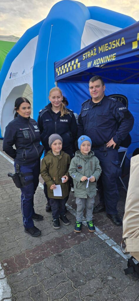 W wydarzeniu udział wzięli także funkcjonariusze Komendy Miejskiej Policji w Koninie, którzy przygotowali stoisko edukacyjne oraz pokaz sprzętu policyjnego. Dużym zainteresowaniem cieszyła się prezentacja radiowozu i wyposażenia policjantów. Dzieci miały okazję porozmawiać z funkcjonariuszami, dowiedzieć się więcej o zasadach bezpieczeństwa na drodze oraz w Internecie.