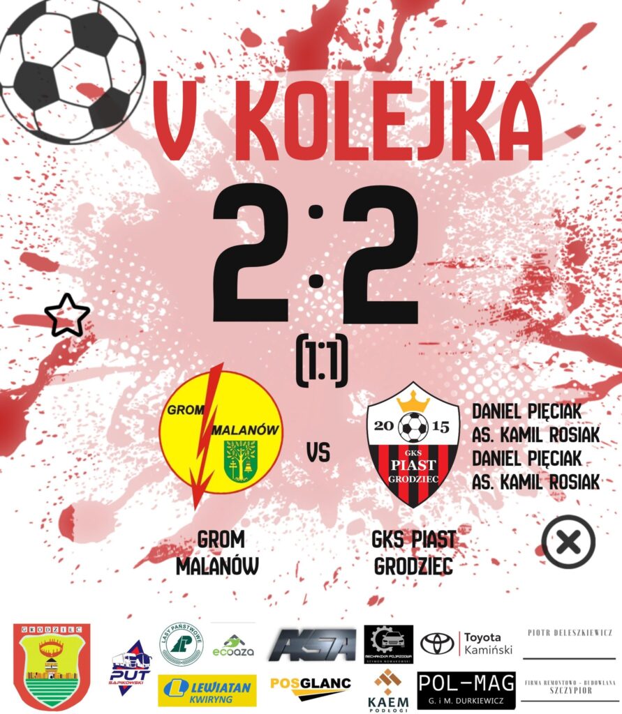 Po zmianie stron grodziecka drużyna ponownie przeprowadziła skuteczną akcję, a jej bohaterem znów został Daniel Pięciak, który po raz drugi wpisał się na listę strzelców. Niestety, na dziesięć minut przed końcem meczu gospodarze doprowadzili do remisu.