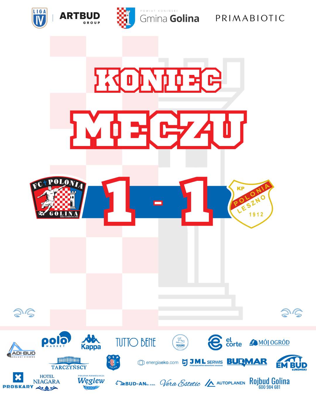FC Polonia Golina zakończyła rundę jesienną remisem w domowym spotkaniu z Polonią 1912 Leszno. Drużyna z Goliny zaprezentowała solidny i konsekwentny futbol, a jedyna bramka dla gospodarzy padła po skutecznej akcji, którą wykończył JAKUB ANTOSIK, przy asyście JANA PACZYŃSKIEGO.