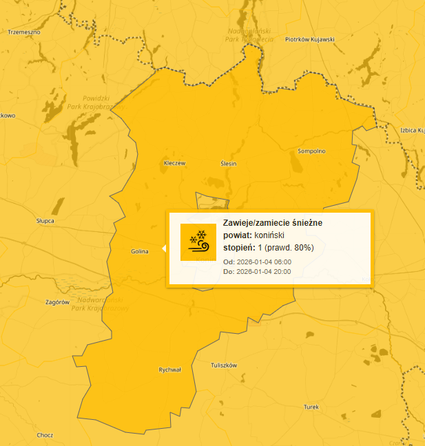 Mieszkańcy powiatu konińskiego powinni przygotować się na pogorszenie warunków pogodowych. Instytut Meteorologii i Gospodarki Wodnej wydał ostrzeżenie pierwszego stopnia związane z silnym wiatrem, który może powodować lokalne utrudnienia.