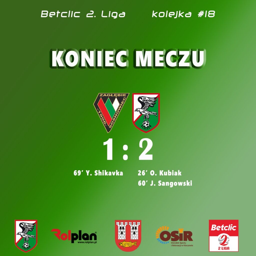 Sokół Kleczew, rozegrał bardzo intensywne spotkanie z Zagłębiem Sosnowiec, które zakończyło się zwycięstwem gości 2:1. Od 64 minuty gospodarze grali w osłabieniu po otrzymaniu drugiej i w konsekwencji czerwonej kartki przez Gryszkiewicza.