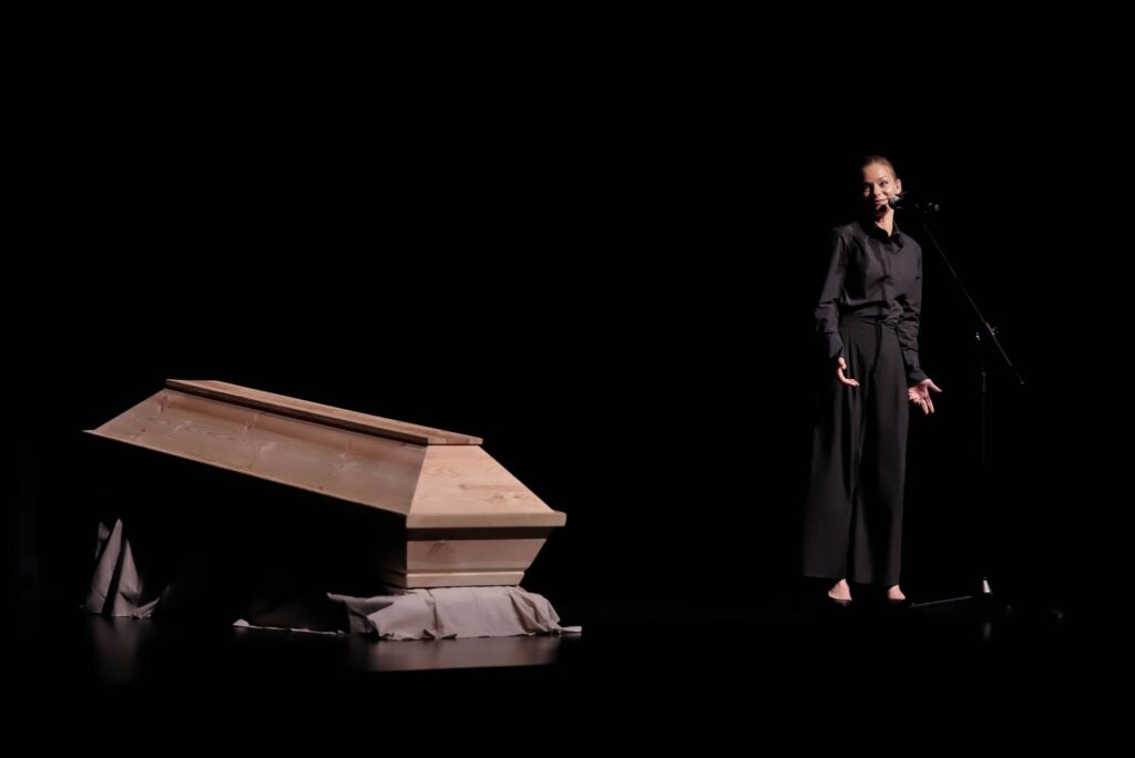 Centrum Kultury Oskard zaprosiło mieszkańców na wyjątkowy wieczór teatralny w ramach programu Teatr Polska, podczas którego zaprezentowano spektakl „Bezmatek”. Już po wejściu na widownię widzowie zobaczyli na scenie trumnę – symboliczne otwarcie historii, która miała ich poprowadzić przez niezwykle intymny świat wspomnień i emocji.