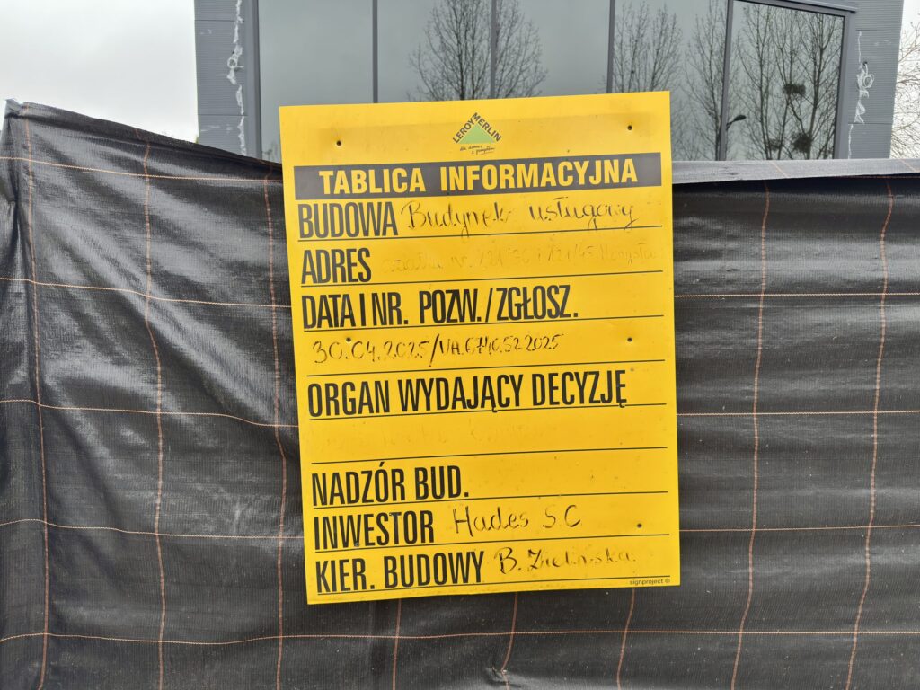 „Budynek usługowy.” Ta informacja widnieje także na tablicy informacyjnej zgodnie z wymogami Prawa Budowlanego.