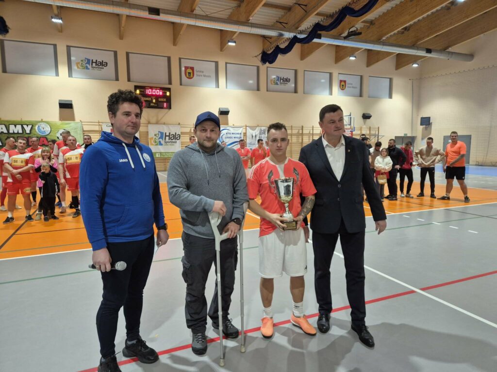 Arkadiusz Wesołowski to postać doskonale znana w lokalnym środowisku sportowym. Przed tragicznym wypadkiem z października 2024 roku, w którym stracił nogę, był niezwykle aktywnym zawodnikiem. Reprezentował barwy m.in. Warty Rumin oraz Błękitnych Helenów, a także z pasją angażował się w rozgrywki futsalu i piłki ręcznej. Podczas niedzielnego wydarzenia Arek osobiście kibicował kolegom z trybun. Choć tym razem nie mógł pojawić się na parkiecie jako zawodnik, jego obecność była dla wszystkich dodatkową motywacją do gry.