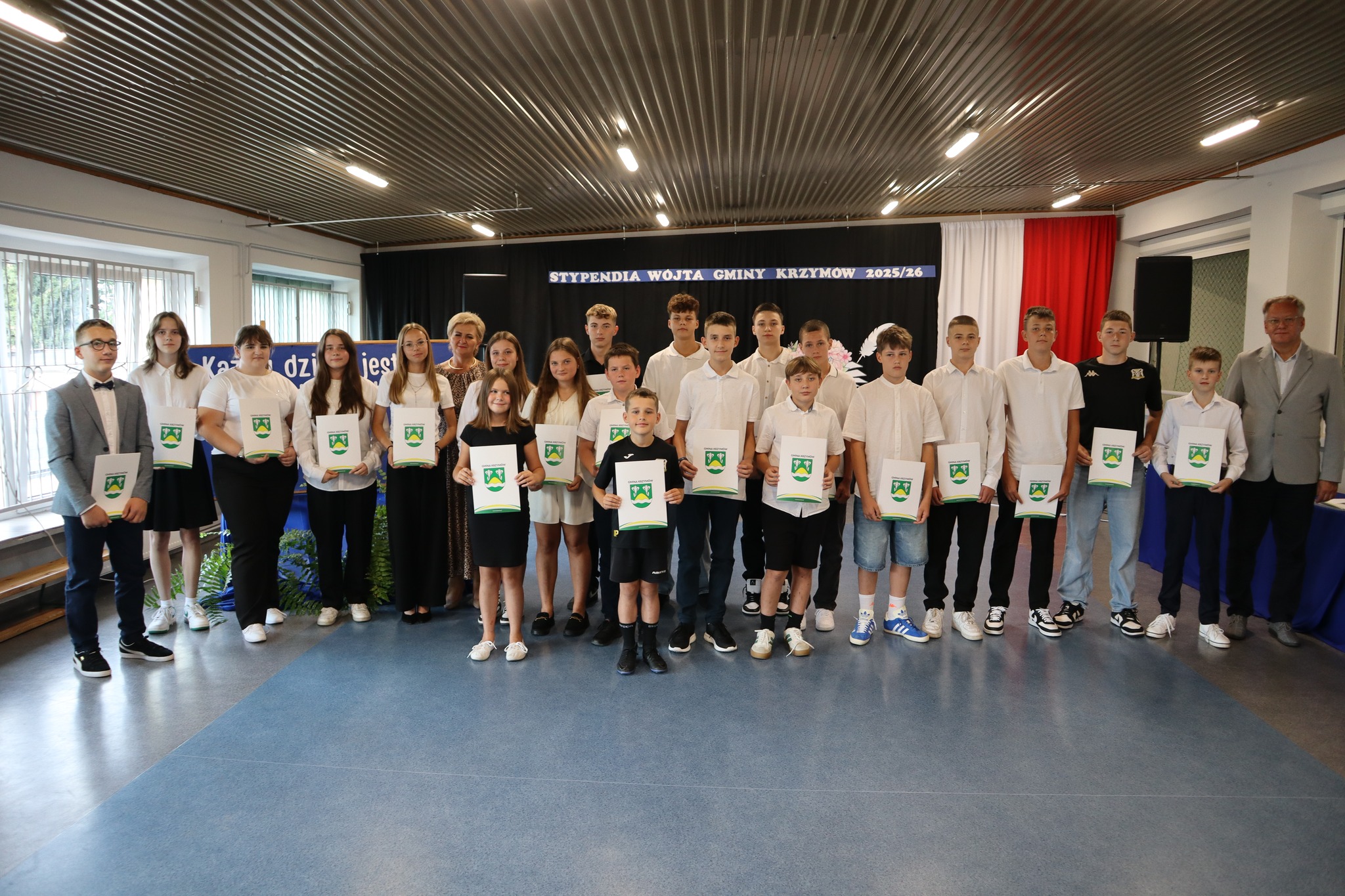 Urząd Gminy Krzymów zorganizował uroczystość wręczenia stypendiów dla uzdolnionych uczniów oraz awansów nauczycielskich. Spotkanie odbyło się 1 września w Szkole Podstawowej im. Mikołaja Kopernika w Krzymowie.