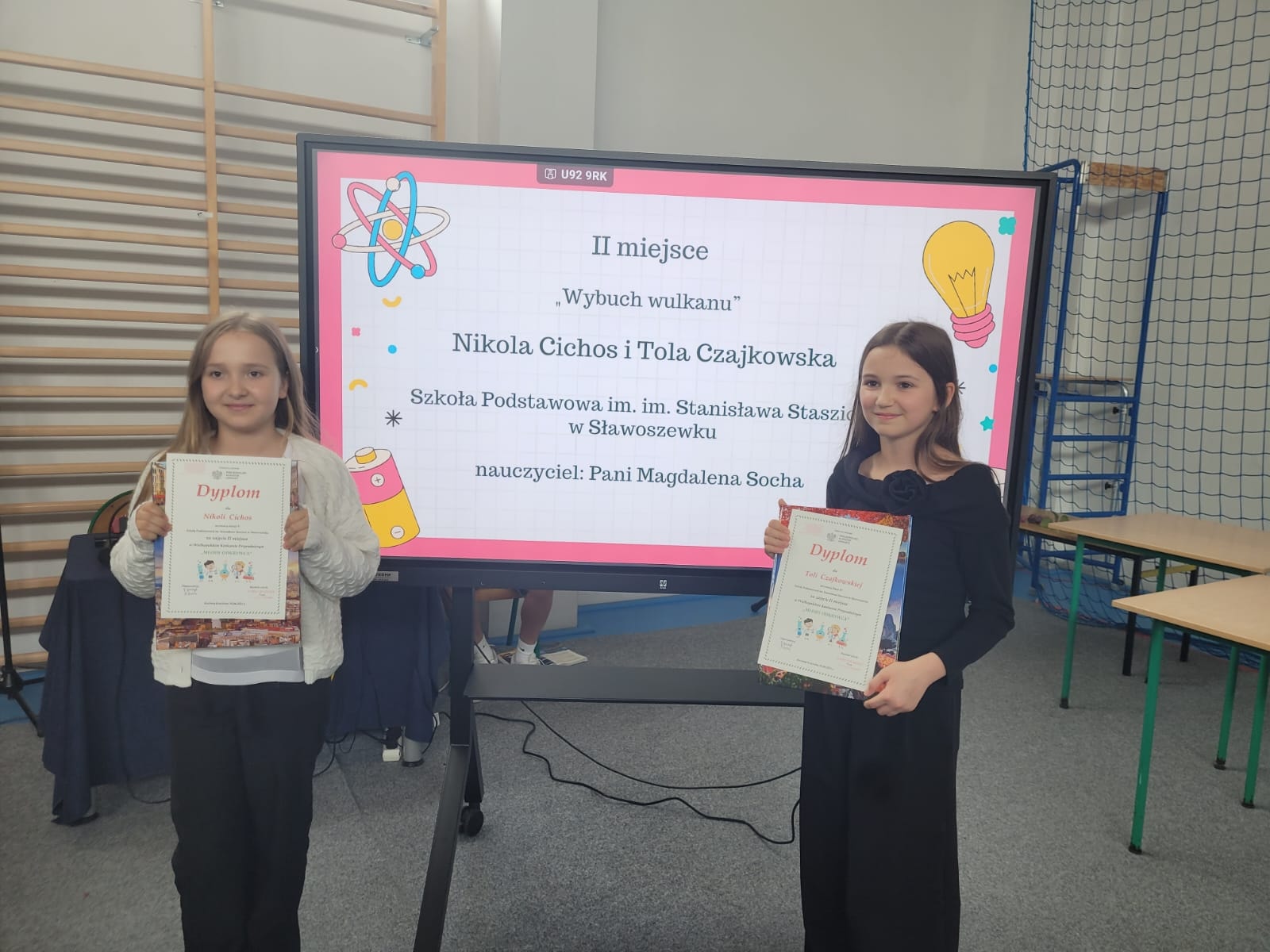 Z radością informujemy, że uczennice klasy czwartej Szkoły Podstawowej im. Stanisława Staszica w Sławoszewku, Nikola Cichos i Tola Czajkowska, zdobyły drugie miejsce w prestiżowym Wielkopolskim Konkursie Przyrodniczym „Młody Odkrywca”. Ich praca pt. „Wybuch wulkanu” została wysoko oceniona przez jury konkursu, które doceniło zarówno pomysłowość, jak i staranność wykonania doświadczenia .