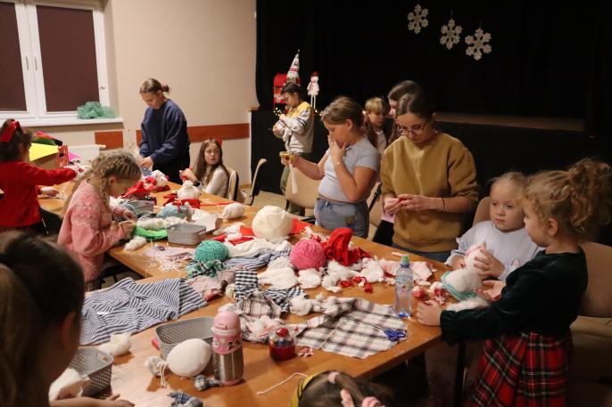 Pierwsza grupa, dedykowana dzieciom, zgromadziła 18 uczestników. Pod czujnym okiem trenerki rozwoju, Anny Wandachowicz, dzieci tworzyły kolorowe skrzaty świąteczne z różnych materiałów – pomponów, guzików i skrawków tkanin. – Skrzat zrobiony własnoręcznie to coś zupełnie innego niż kupiony w sklepie – podkreślała prowadząca. Oprócz skrzatów powstały także inne ozdoby choinkowe.