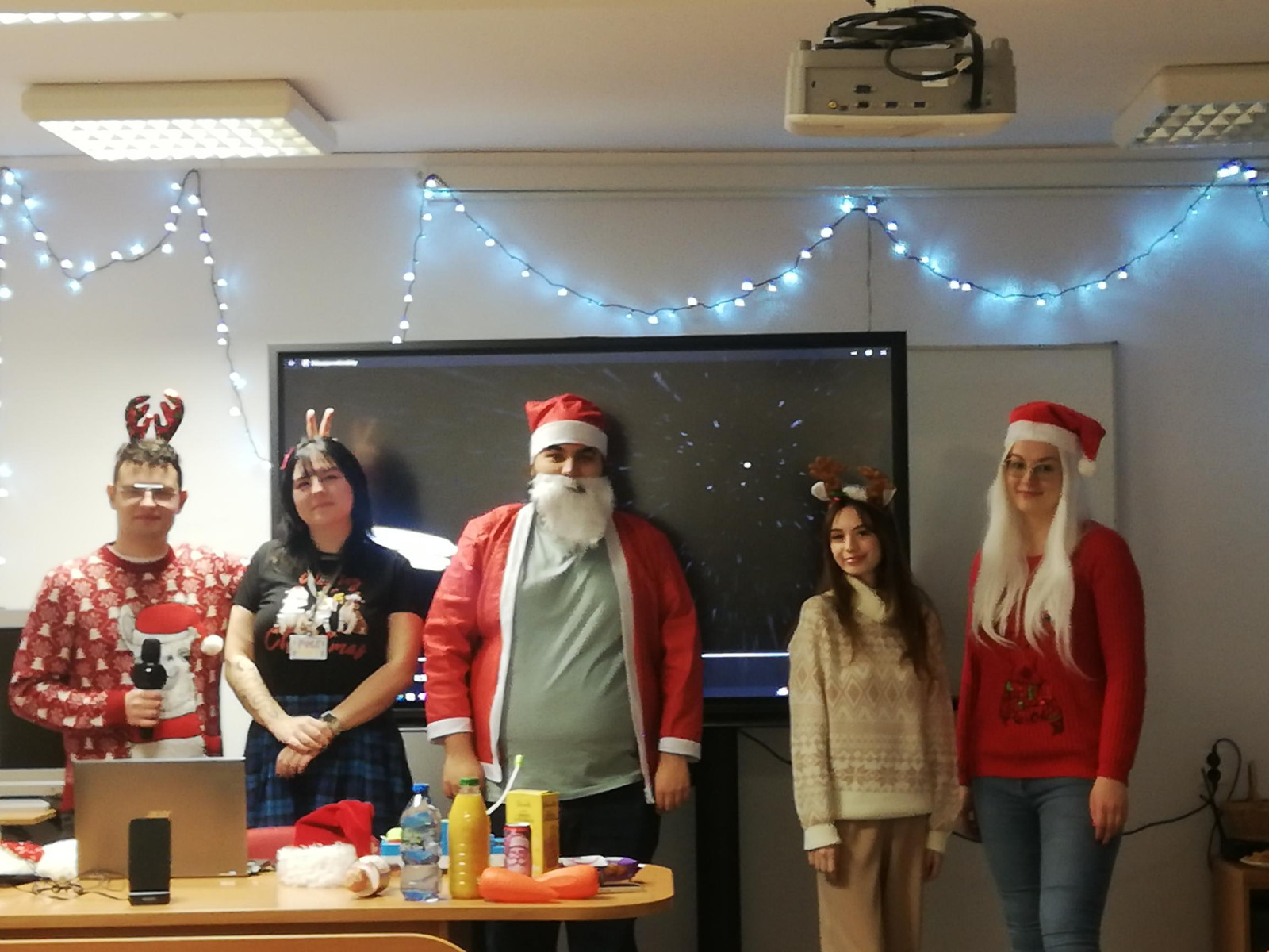 Uczestnicy warsztatów mieli okazję poznać słownictwo związane ze świętami Bożego Narodzenia, brać udział w quizach i konkursach językowych, a także bawić się i śpiewać ze św. Mikołajem, panią Mikołajową oraz ich świtą.