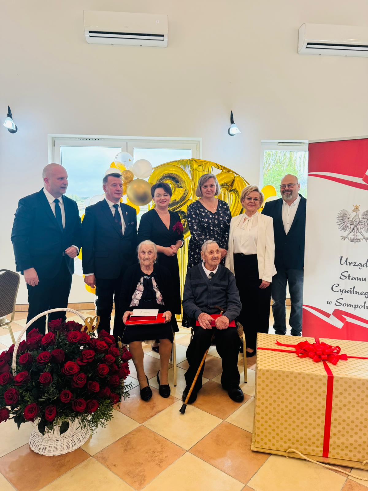 Na ręce Jubilatów wręczono List Gratulacyjny od Prezydenta RP Karola Nawrockiego, który odczytał i przekazał Burmistrz Miasta Sompolno Waldemar Marciniak, oraz Medalion z wizerunkiem Orła Senatu RP, który przekazał Senator RP Leszek Galemba. Słowa uznania i życzenia złożyli również przedstawiciele samorządu, duchowieństwa, rodziny i sąsiedzi.