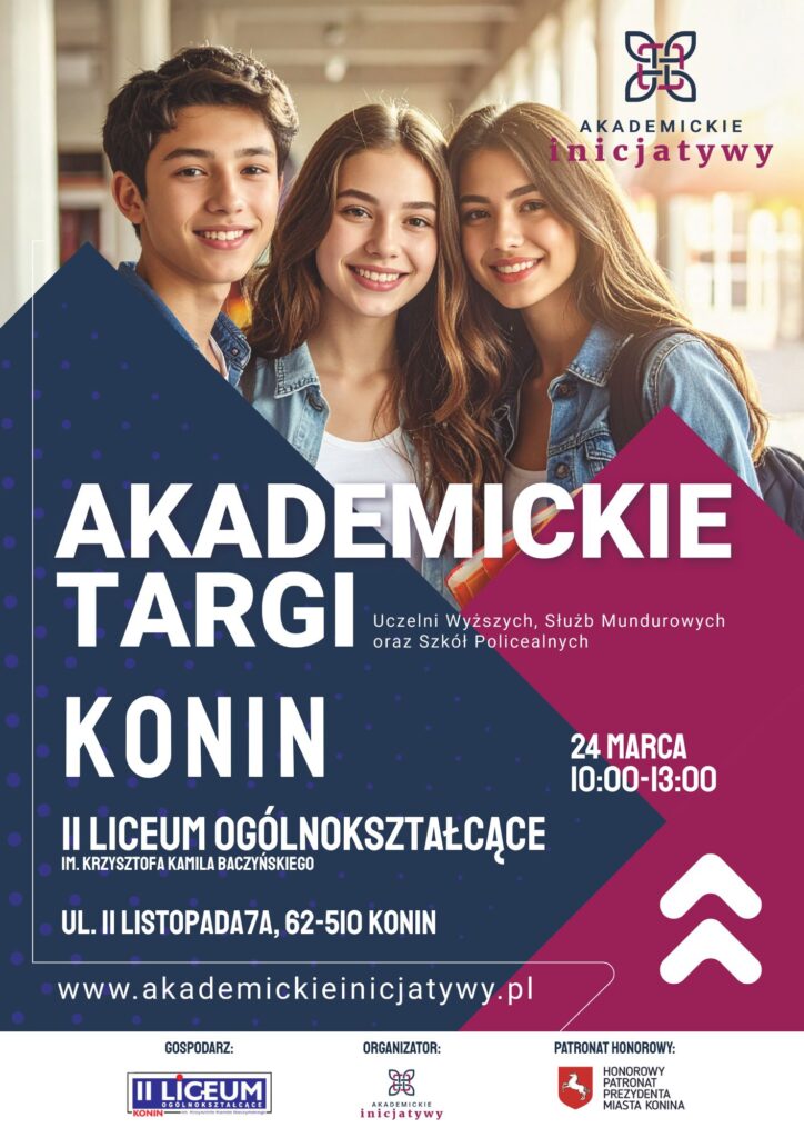 Targi Akademickie 2026 w Koninie odbędą się we wtorek 24 marca w II Liceum Ogólnokształcącym im. Krzysztofa Kamila Baczyńskiego. Wydarzenie skierowane jest przede wszystkim do uczniów szkół ponadpodstawowych, którzy stoją przed wyborem dalszej ścieżki edukacyjnej i zawodowej.