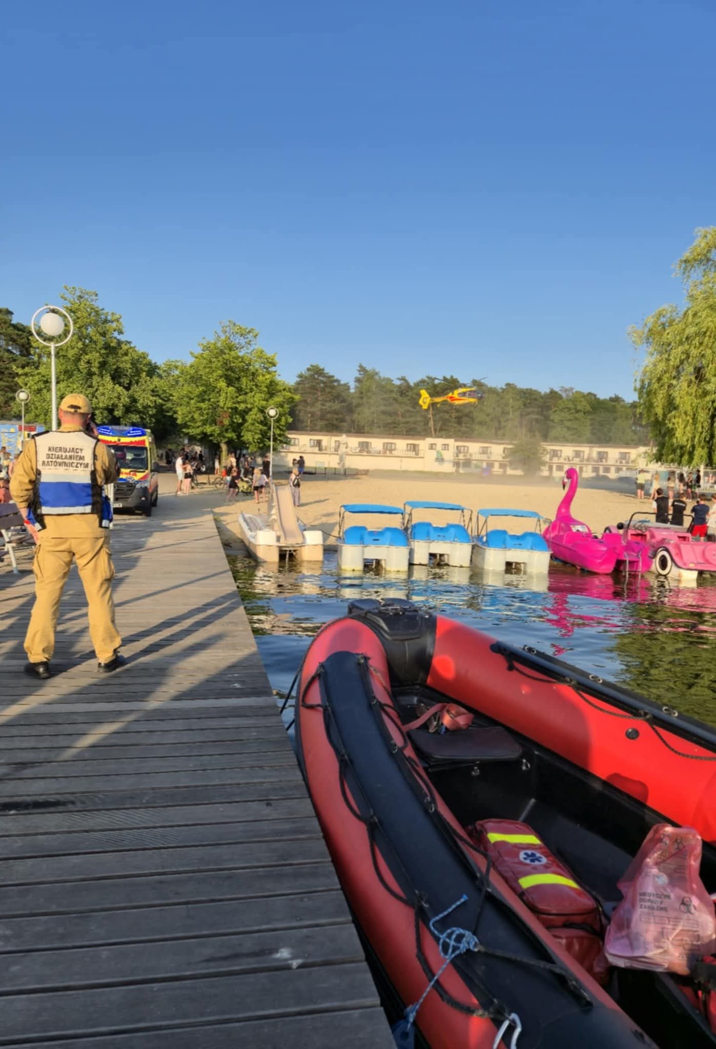 Podczas trwających działań ratowniczych wpłynęło kolejne dramatyczne zgłoszenie – tym razem z Jeziora Ślesińskiego. Według relacji świadków, na głównej plaży w Ślesinie mężczyzna skoczył do wody i nie wypłynął. Do akcji skierowano strażaków z łodziami ratowniczymi oraz druhów z OSP Ślesin i OSP Cukrownia Gosławice. Po przybyciu na miejsce ratownicy otrzymali wskazanie od świadków i przystąpili do działań. Nurek wyposażony w specjalistyczny sprzęt odnalazł zaginionego mężczyznę na głębokości około 3,5 metra. Pomimo natychmiastowej resuscytacji krążeniowo-oddechowej oraz pomocy udzielonej przez Zespół Ratownictwa Medycznego i Lotnicze Pogotowie Ratunkowe, życia młodego mężczyzny nie udało się uratować.