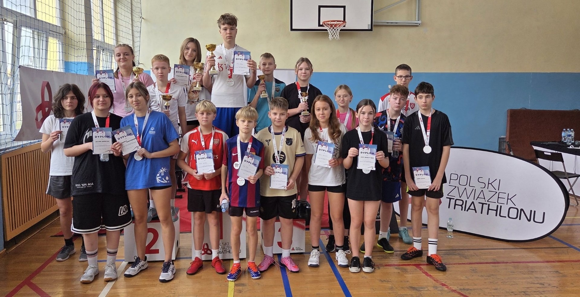 Zawody zakończyły się wręczeniem pamiątkowych medali i dyplomów, a najlepsi otrzymali okazałe puchary. Na twarzach uczestników nie brakowało uśmiechu i dumy z własnych osiągnięć. Wydarzenie „Tri Pop – Mój Pierwszy Triathlon” pozostanie w pamięci uczniów jako dzień pełen pozytywnej energii, emocji i sportowego ducha, który pokazał, że każdy może spróbować swoich sił i odkryć w sobie mistrza.